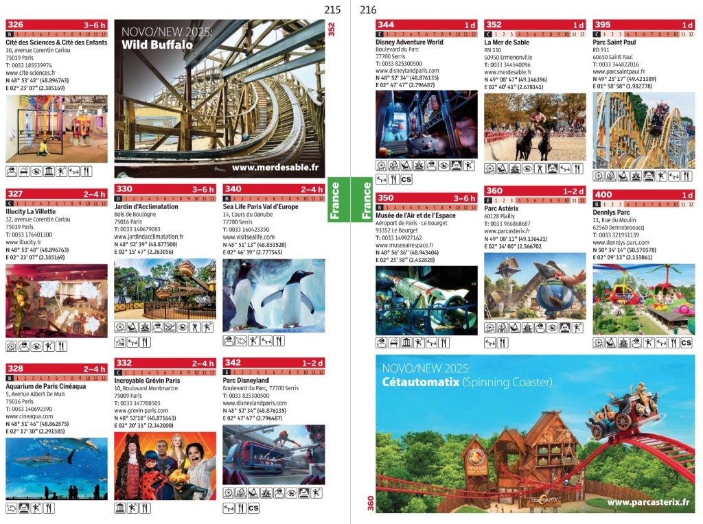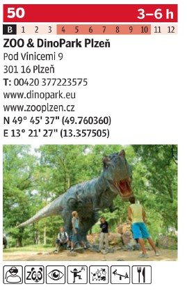 Velmi užitečná pro plánování je pak u atrakcí odhadovaná doba potřebná k návštěvě hned v titulce místa a kdy v roce je otevřeno. Písmeny A (pod 10 €) až E (nad 40 €) je označena finanční náročnost návštěvy. Ikonky pak pomohou získat rychlý přehled o všech možnost místa a dostupných službách.