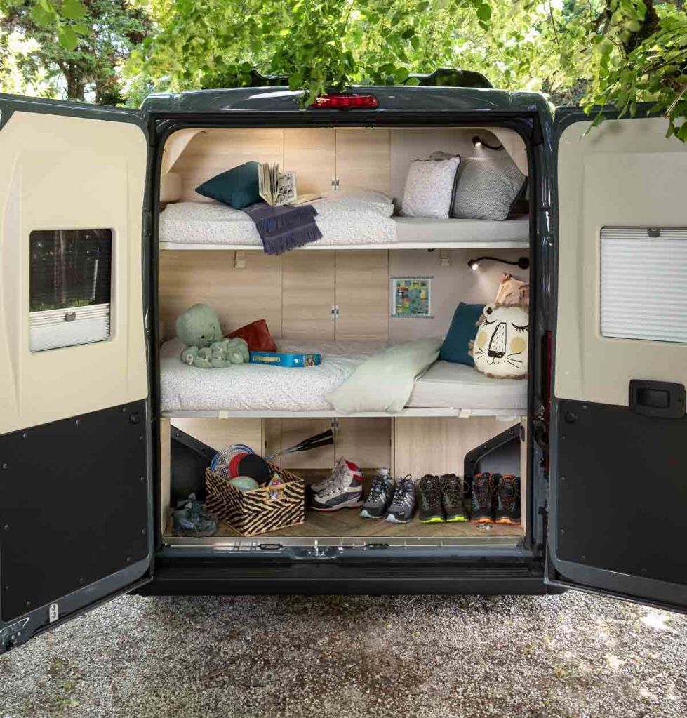 Novým interiérovým designem a promyšleným konceptem obytného prostoru se vyznačuje vestavba Twin New Generation. Moderní design inspirovaný automobilovým průmyslem přináší styl, komfort a funkčnost. Otevřený obytný prostor poskytuje dostatek místa, zatímco panoramatické okno vpředu dodává vzdušnost. Více viz https://www.adria-mobil.com/inspirations/new-twins-a-pioneering-spirit