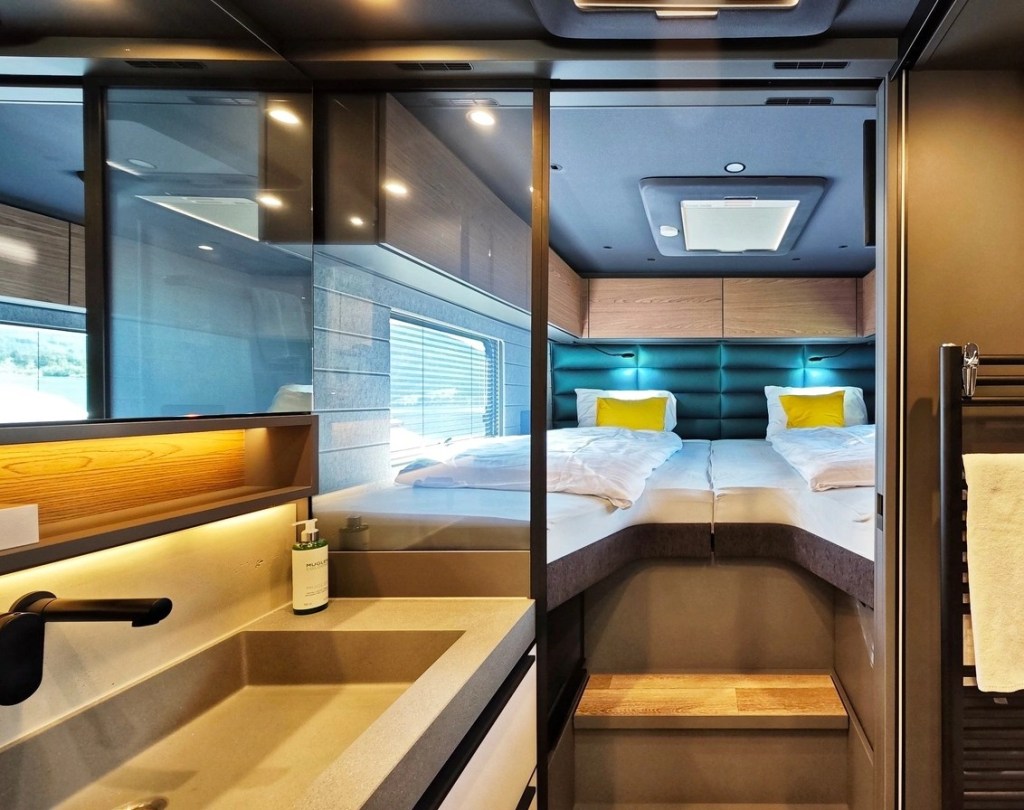 Niesmann+Bischoff nastavuje s modelem Arto nové standardy v oblasti integrovaných obytných vozů na podvozku Mercedes Sprinter. Moderní design je přímý, jednoduchý a bez zbytečných ozdob. I interiér je pečlivě promyšlen do posledního detailu: unikátní prvky, jako je obložení stěn z filcu, vytvářejí útulnou atmosféru a přirozenou akustiku. Volné pohledové osy od kabiny řidiče až po zadní spací část a inteligentní světelný koncept vytvářejí příjemnou atmosféru pro relaxaci. Kuchyň je plně přizpůsobitelná individuálním potřebám. Speciální úložný prostor v dvojitém dně a servisní přihrádky jsou přístupné přes vyvýšené boční dveře, které jsou jednotně integrovány v bočním plechu. Více viz https://www.niesmann-bischoff.com/de/arto-reisemobil/
