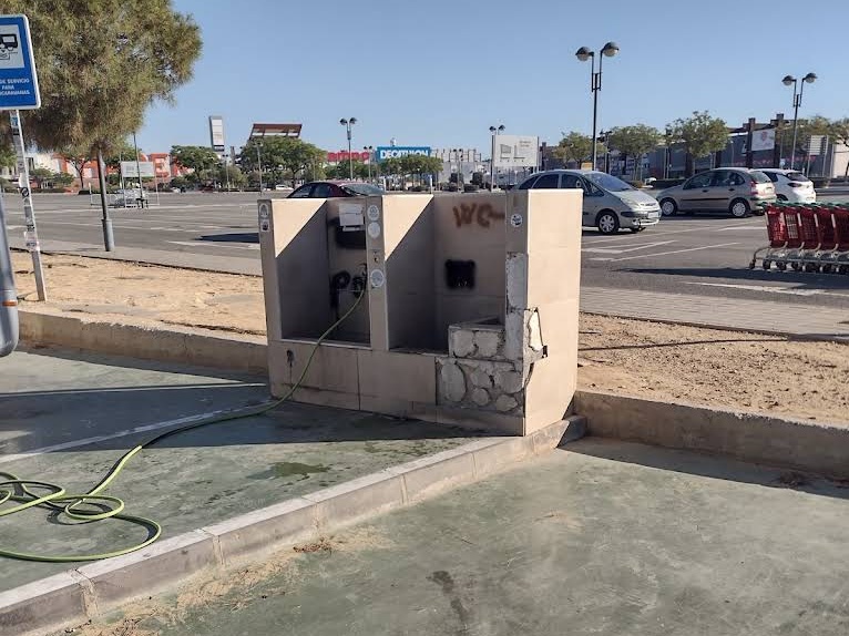 Za příklad budiž vezmu velký stellplatz, tj. oficiální místo pro obytná vozidla, trochu dále, v Murcii (https://park4night.com/en/place/31723). Zde je velké parkoviště pro obytné vozy v nákupním centru, které je spojeno s městem výhodně tramvajovou linkou. K dispozici je zde na dvě stovky míst, navíc zdarma. Bohužel na tento počet míst je zde jen jedno (dvojité) servisní místo. I když jsou pravidla pro používání nastavena striktně a každý je na ně při vjezdu upozorněn. nikdo je obvykle nevymáhá. Takže místo stání na nejvýše 72 hodin zde mnozí tráví týdny a prostor kolem vozidla obstavují nábytkem. O způsobou likvidace odpadů si u některých také nelze dělat iluze a místo ve výlevce končí v kanálech pro odvod dešťové vody. Zdaleka ne všichni se takt chovají, navíc místo není stále plně vytížené a volný prostor může k takovému jednání, tedy kempování, svádět. Jak říká karavanistka Wilma „je zde tolik volného místa, tak snad stolek a židličky nikoho neobtěžují„
