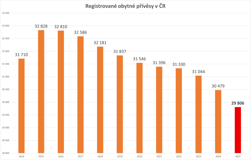 - 29.806 obytných přívěsů (úbytek – 673 v meziročním porovnání)