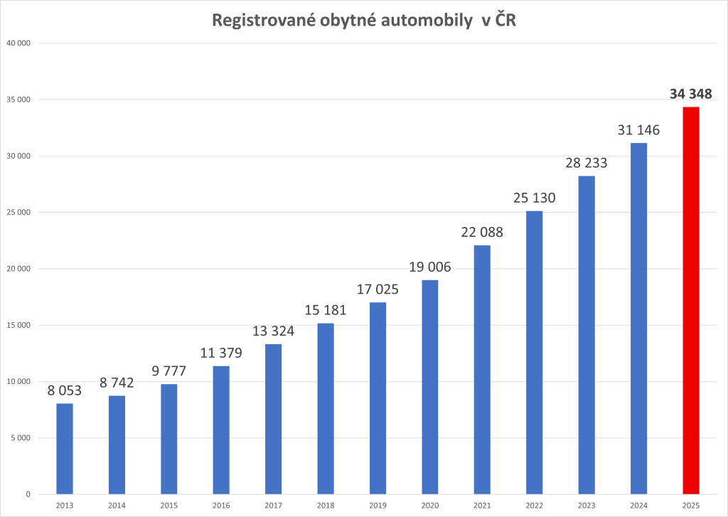 V roce 2025 počet registrovaných obytných aut v ČR stoupl na 34.348, za dvanáct měsíců tak přibylo 3.202 motorových obytných vozidel. Meziročně tak sice počet obytných aut vzrostl podobně jak vloni o 10.3 %, ovšem v absolutních čísel se jedná o nový rekord. Doposud toto prvenství náleželo roku 2023 s počtem 3.103 obytných aut. V roce 2025 stouply jak prodeje nových obytných aut (o více jak 14 %), tak byl růst živen i dovozy ze zahraničí a přestavbami vozidel. Chuť cestovat obytným autem u nás tedy nepolevuje a z grafu je jasně vidět, že počet obytných aut u nás výrazně roste posledních deset let, tedy již od roku 2015.