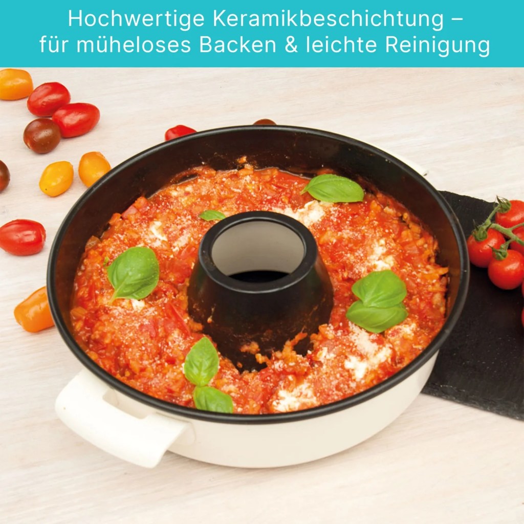 RoadBaker: Nepřilnavý povrch bez PFAS, pevná nerezová základna pro rovnoměrné pečení a prevence připálení. Design inspirovaný Vespu – moderní a stylový.