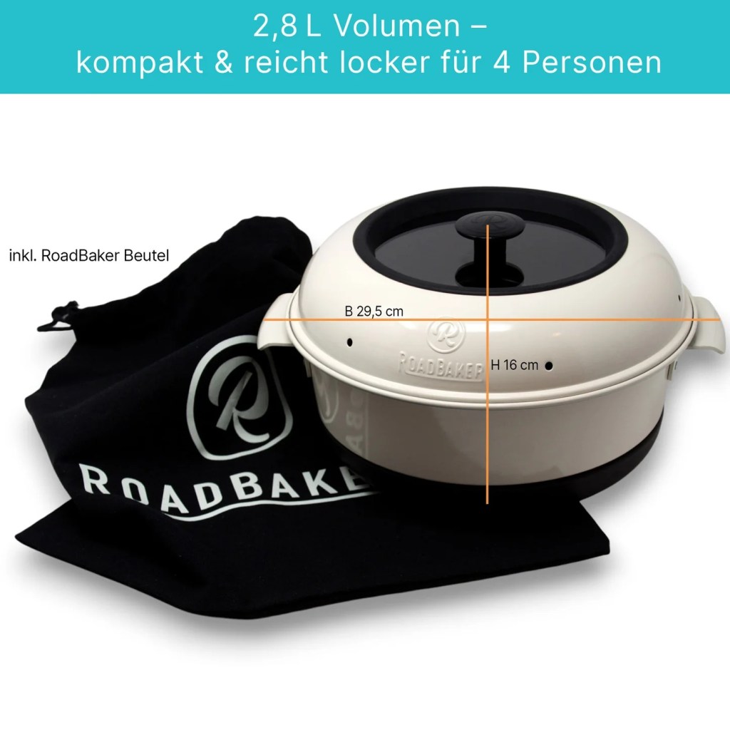 RoadBaker: objem 2,8 l umožňuje připravit větší porce (dort, lasagne) a má kvalitní nepřilnavý povrch pro snadné čištění.