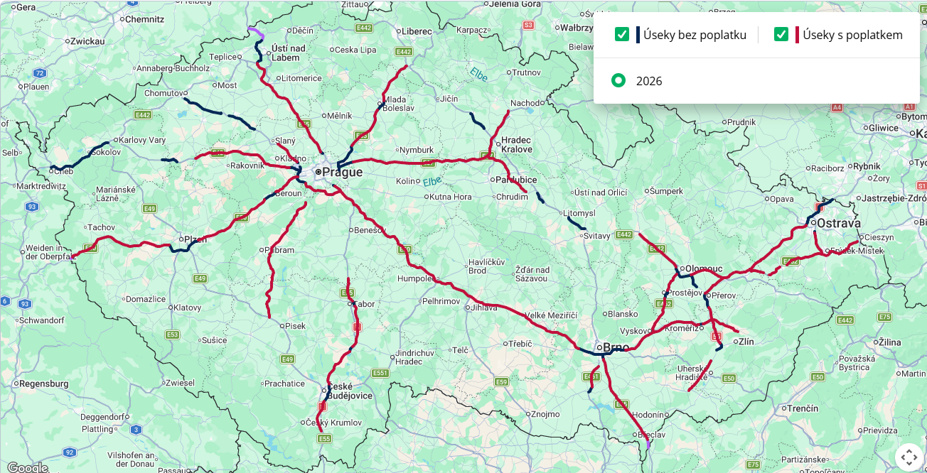 Zpoplatněných komunikací není ale tolik, viz následující mapka: