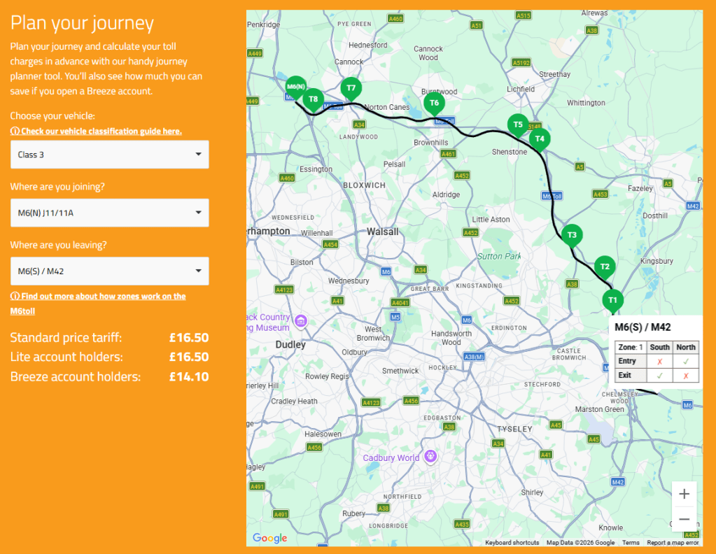 Přehled všech zpoplatněných tras naleznete na webových stránkách britské vlády: gov.uk/uk-toll-roads