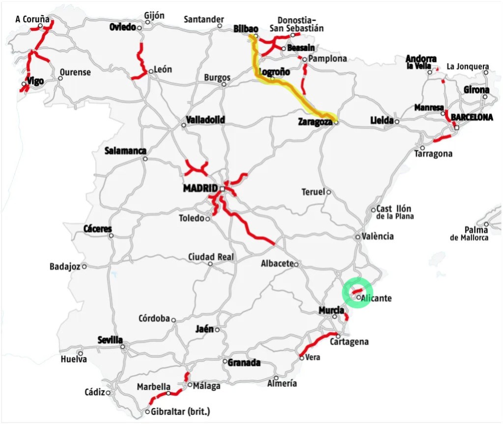 A bohužel až po letní sezoně 2026 bude zdarma celá dálnice AP-68 a to od 11. listopadu 2026. Dojde zároveň k přeznačení na A-68. Na mapce je tento cca 300 km úsek označen žlutou čárou, aktuálně se zde za osobní auto platí za projetí celé trasy (tj. Bilbao-Zaragoza) částka 39,90 €.